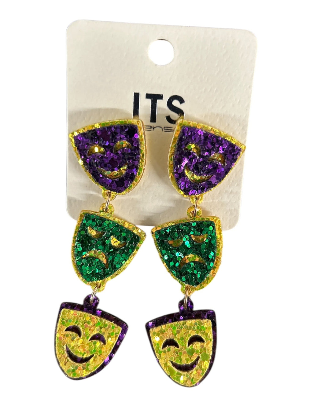 Add a touch of expressive charm to your look with these Comedy & Tragedy Glitter Dangle Earrings. Designed to capture the classic theatrical masks, their sparkling finish brings attention and personality to any outfit. Lightweight and comfortable, these earrings let you celebrate both joy and drama with stylish ease. Perfect for theater lovers or anyone who enjoys unique, meaningful accessories.