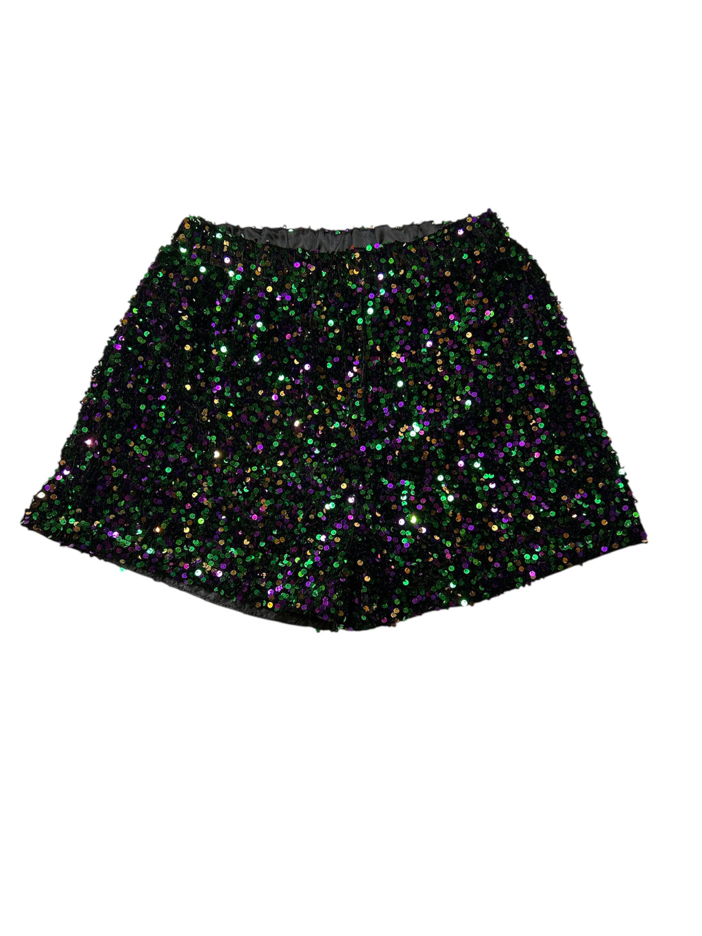 Get ready to shine at every celebration with these Mardi Gras Sequin Shorts. Designed to catch the light and turn heads, they offer a dazzling look that’s perfect for parades, parties, or any festive occasion. Comfortable and stylish, these shorts let you dance the night away while standing out in vibrant, sparkling style. Elevate your Mardi Gras wardrobe with a piece that combines fun and flair effortlessly.